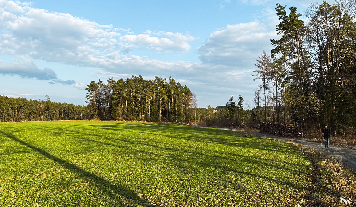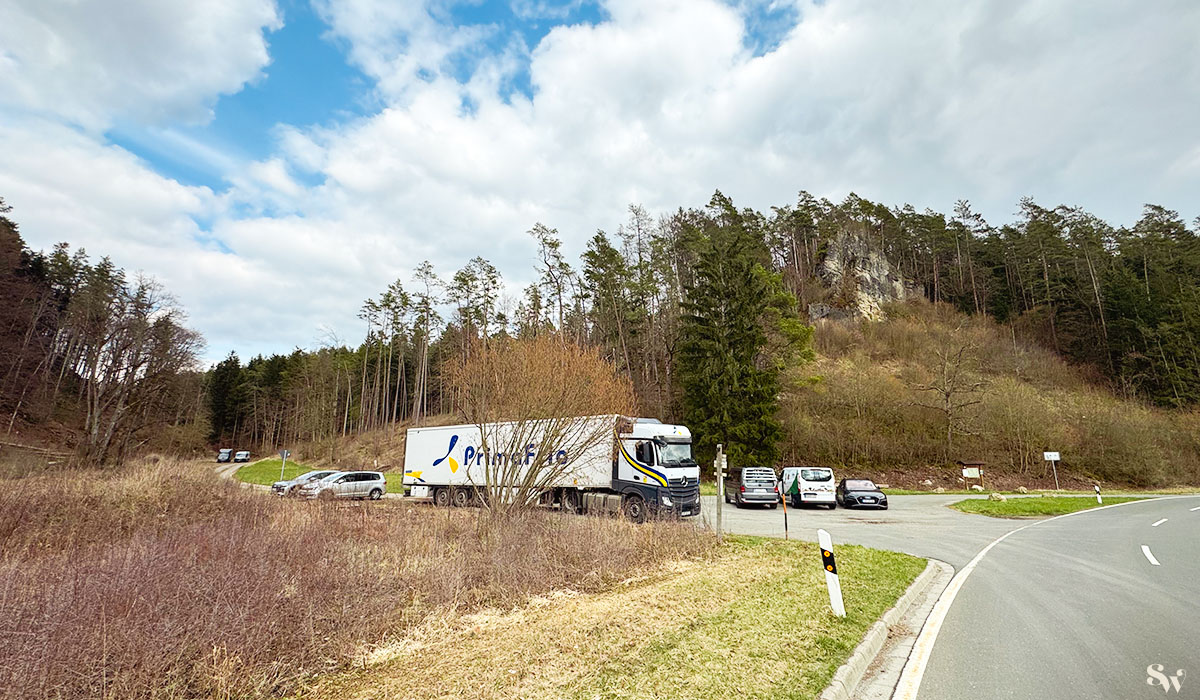 Unsere Wanderung beginnt auf dem Wanderparkplatz zwischen Draisendorf und Aufseß. Er liegt direkt neben der Landstraße.