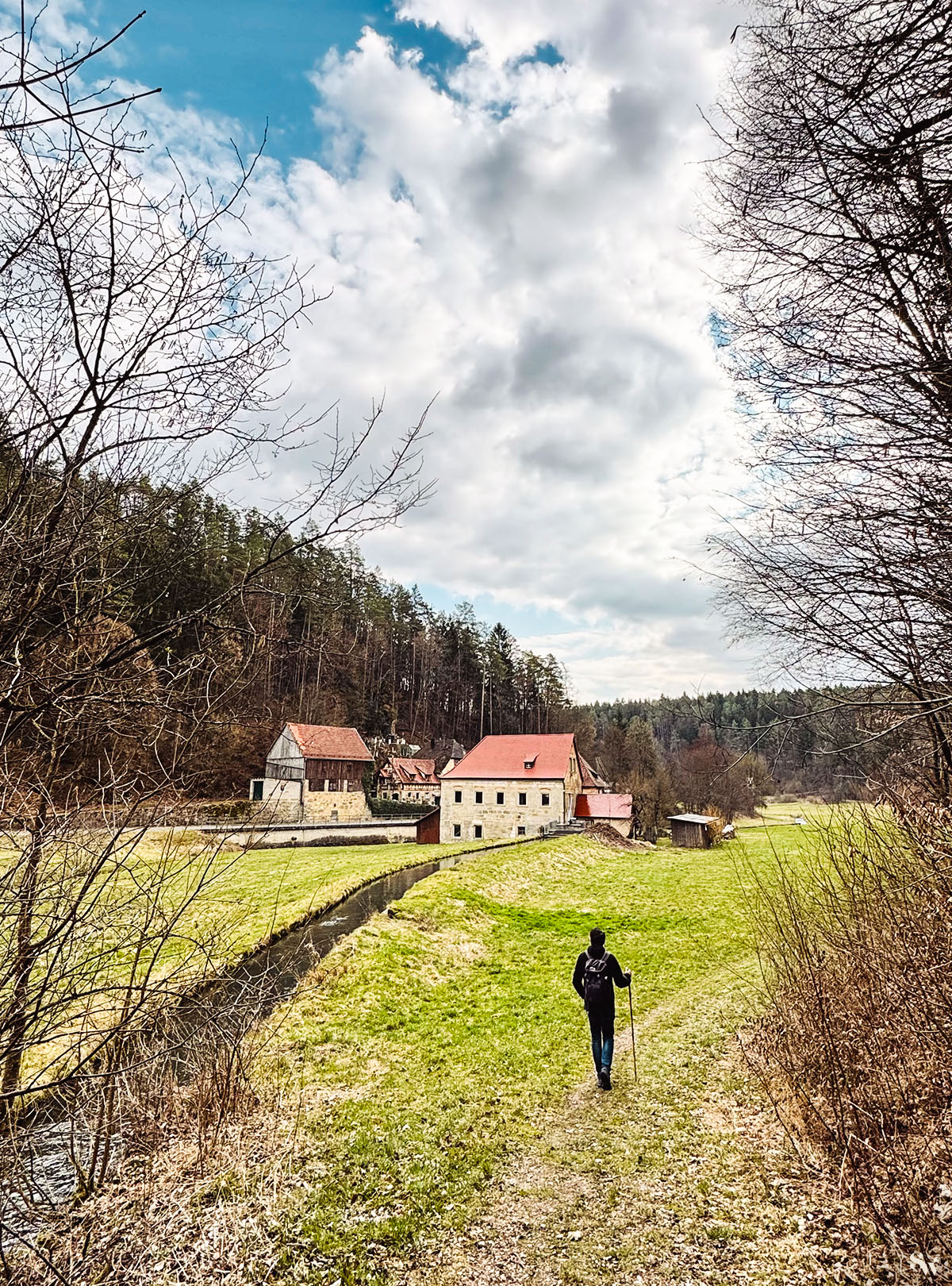 Wieder unten im Aufseßtal führt der Weg weiter am Bach entlang und durch Draisendorf.