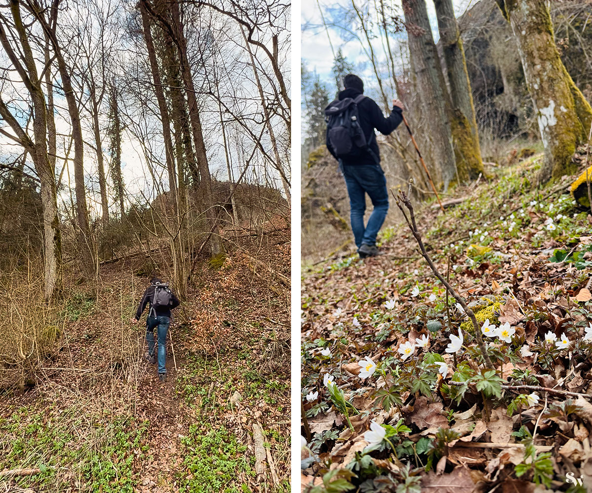 Auch hier begegnen wir wieder Frühblühern (Buschwindröschen) ...