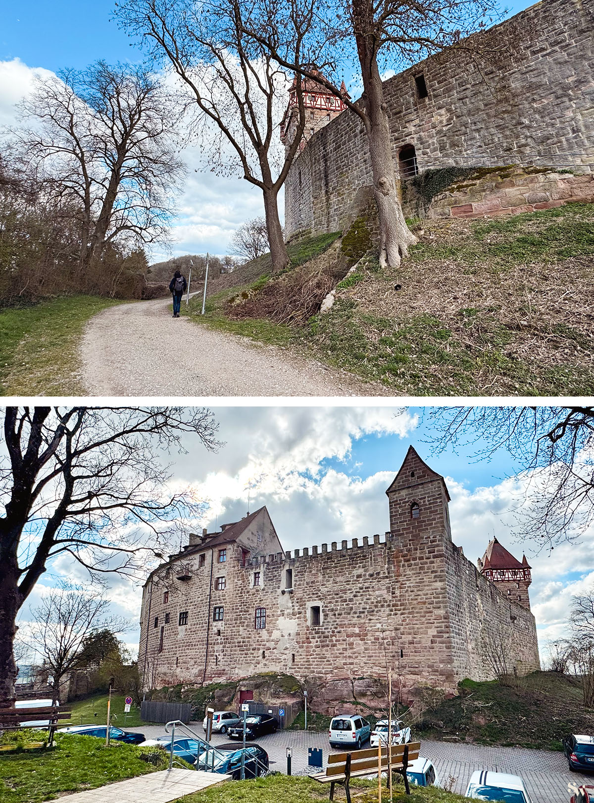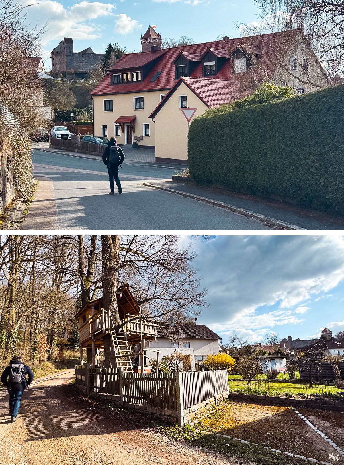 Unsere kleine Abenberg-Runde beginnt auf dem Parkplatz der örtlichen Schule. Von dort aus sind es nur wenige Meter hoch zur Burg.