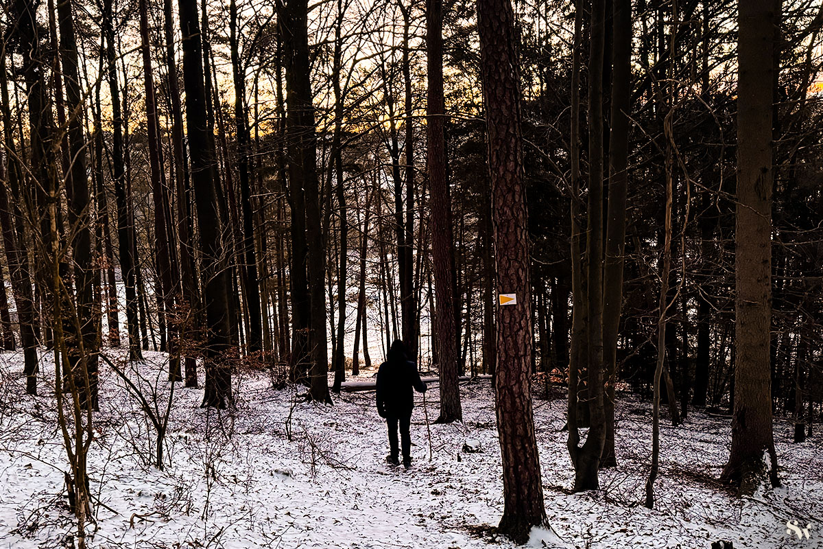 ... dann über breitere Wege und verschneite Trampelpfade.