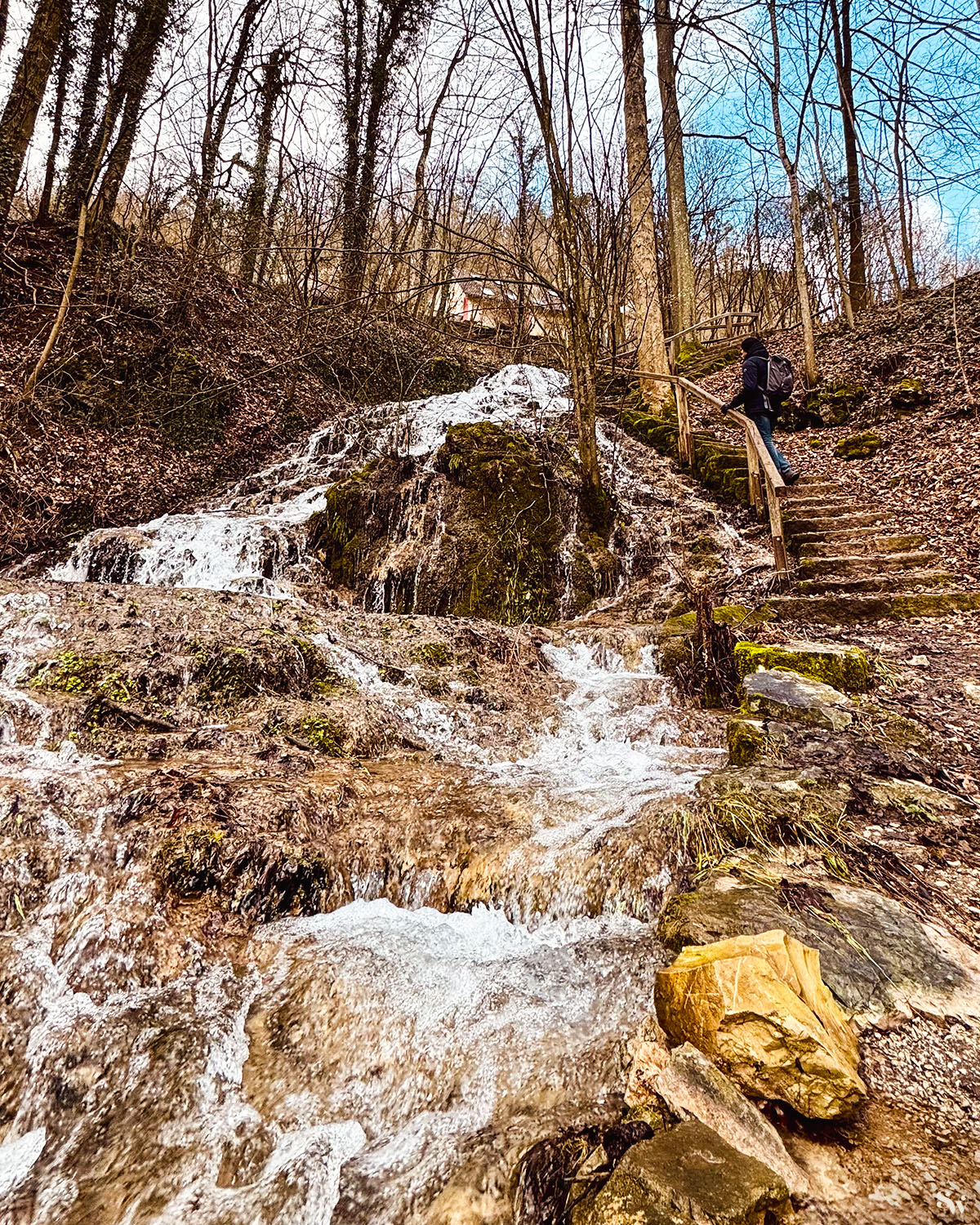 Wirklich sehenswert sind die Sinterterrassen, über die das klare Wasser nach unten rauscht.