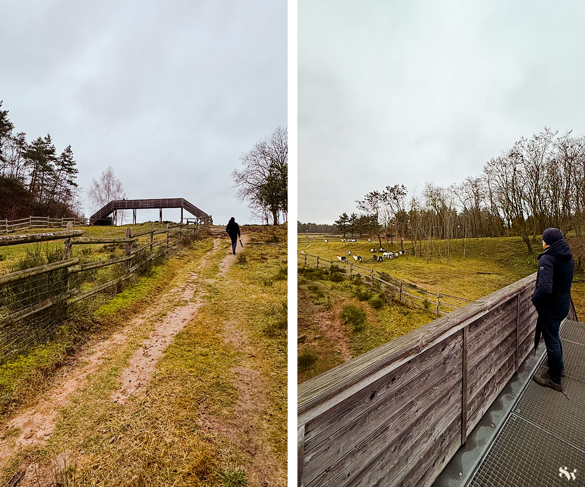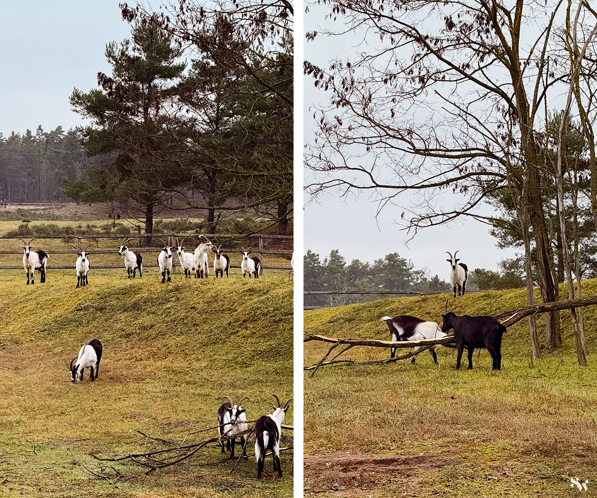 Die Pferde bzw. Ziegen sind in 2 Gehegen zuhause, die man beide umwandern kann (siehe Erweiterungstipp am Ende der Tourenbeschreibung). Wir sind nur um das südwestliche Gehege gelaufen und hier über eine Brücke auf die andere Gehegeseite gestiegen.