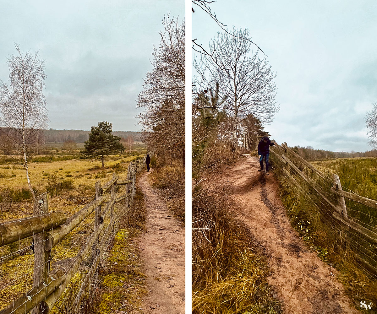 Auch auf der nördlichen Seite des Geheges führt zunächst ein Pfad am Gatter entlang.